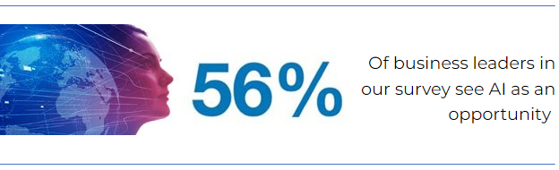 The research, conducted by the Centre for Business and Economics Research (Cebr), revealed 56% of business leaders say AI represents a opportunity for their organisation – compared to 23% that see it as a threat.