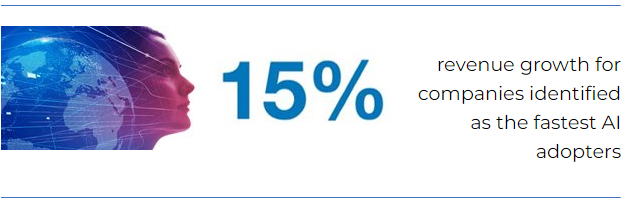 Companies with at least 250 employees reporting the fastest AI adoption have seen average revenue growth of 15% between 2019 and today – more than double the rate at firms where investment in or use of the technology has stalled over the past four years.